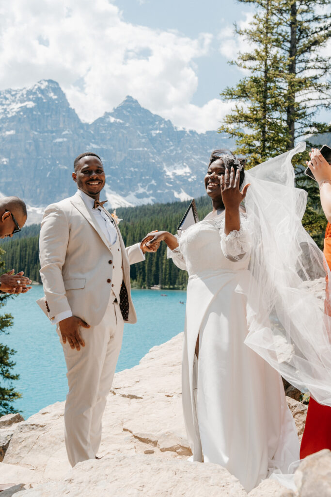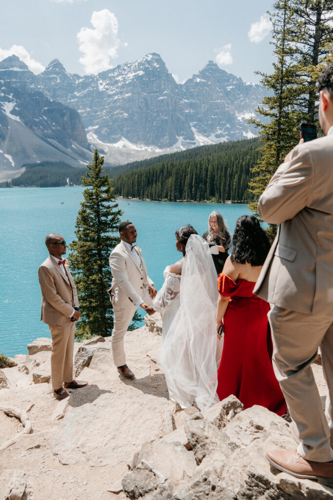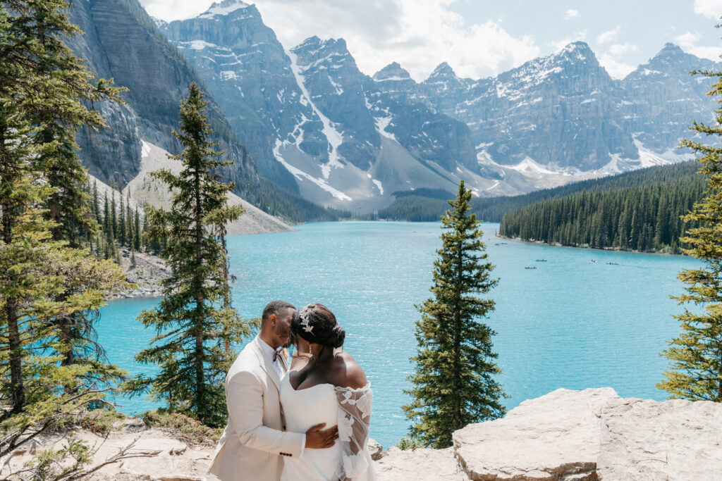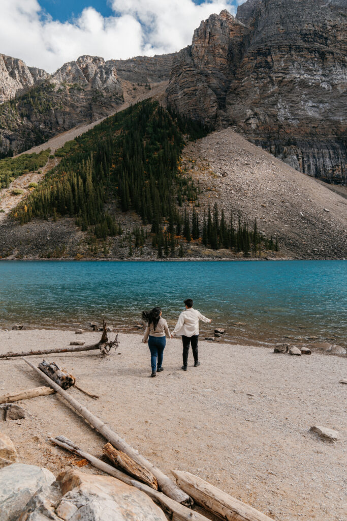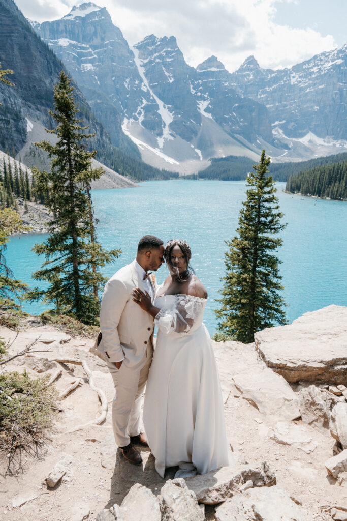 • Elopement Note: Space around the viewpoint is quite limited, so it’s best suited for very small elopements, just the couple and officiant. If you’re planning a larger celebration, consider doing your ceremony elsewhere and coming to Moraine Lake afterward for portraits.
